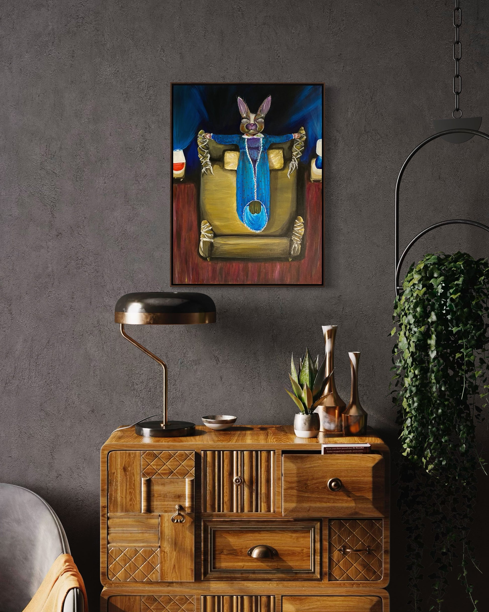 Original acrylic art piece painted by Jackie Harris. Size 18X24. Horror style painting. This portraits captures a possession.