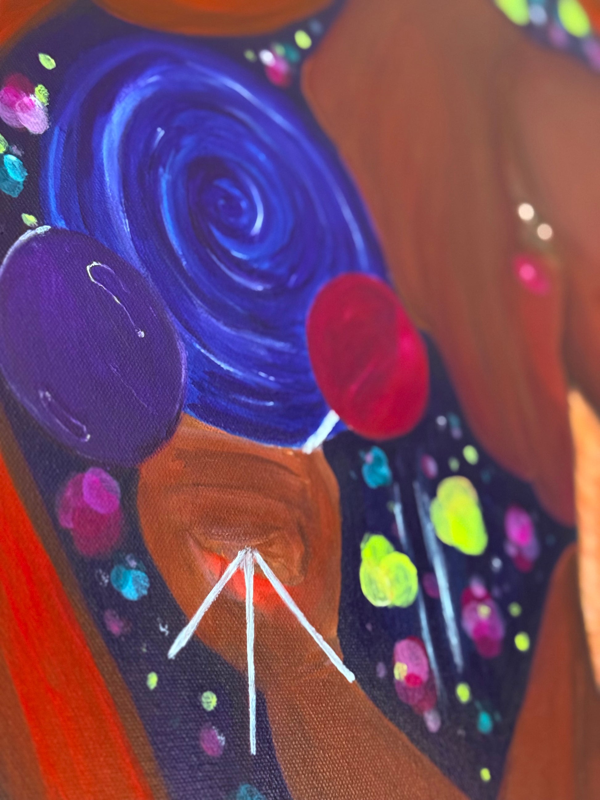 Painted in acrylic on gallery-wrapped canvas, this large-scale piece commands attention in any space. It’s both whimsical and sophisticated, a perfect balance of fantasy and truth. Collectors who appreciate surrealism, emotional storytelling, and fine art with a touch of magic will find this painting unforgettable.
